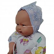 "МоёДитё" чепчик с гипюром нарядный белый с голубым Т196 "Вербена"