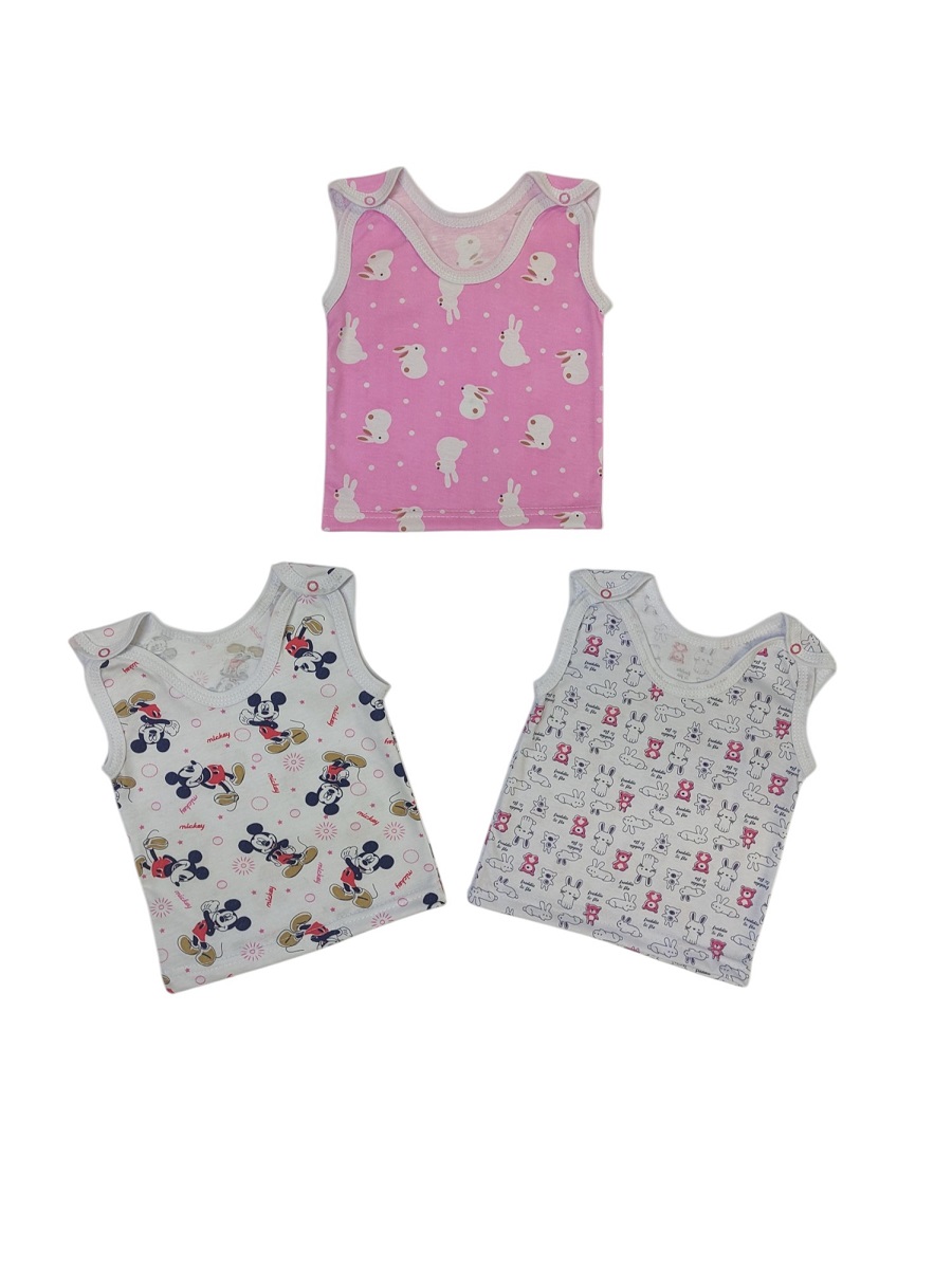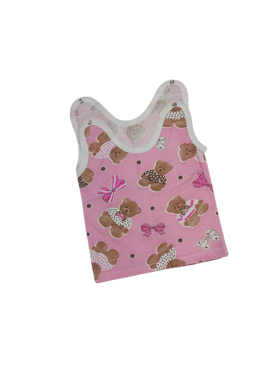 Маечка выполнена из 100% хлопка (кулирка), с кнопочками на плечиках.